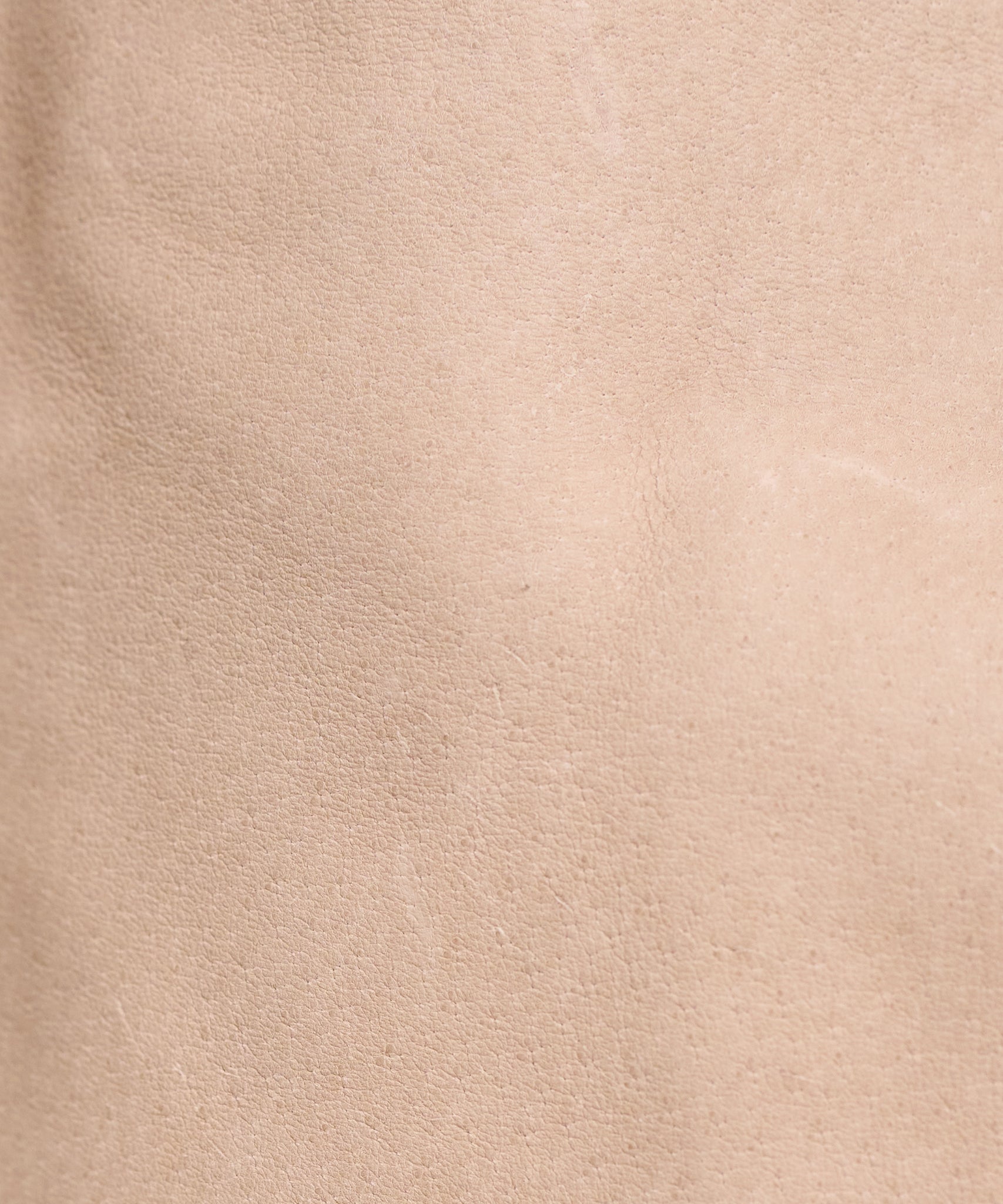 This is REN's original pigskin. Pig skin is a material that is relatively prone to scratches and uneven coloring, and was commonly used as a backing material. However, we saw its potential in its light weight, high density, durability despite its thinness, breathability, and fabric-like suppleness. By studying the differences in density and texture of different parts of the hides, as well as the dyes used, and by developing a method that wastes as little raw hides as possible, the appeal of this material is now reaching many people.