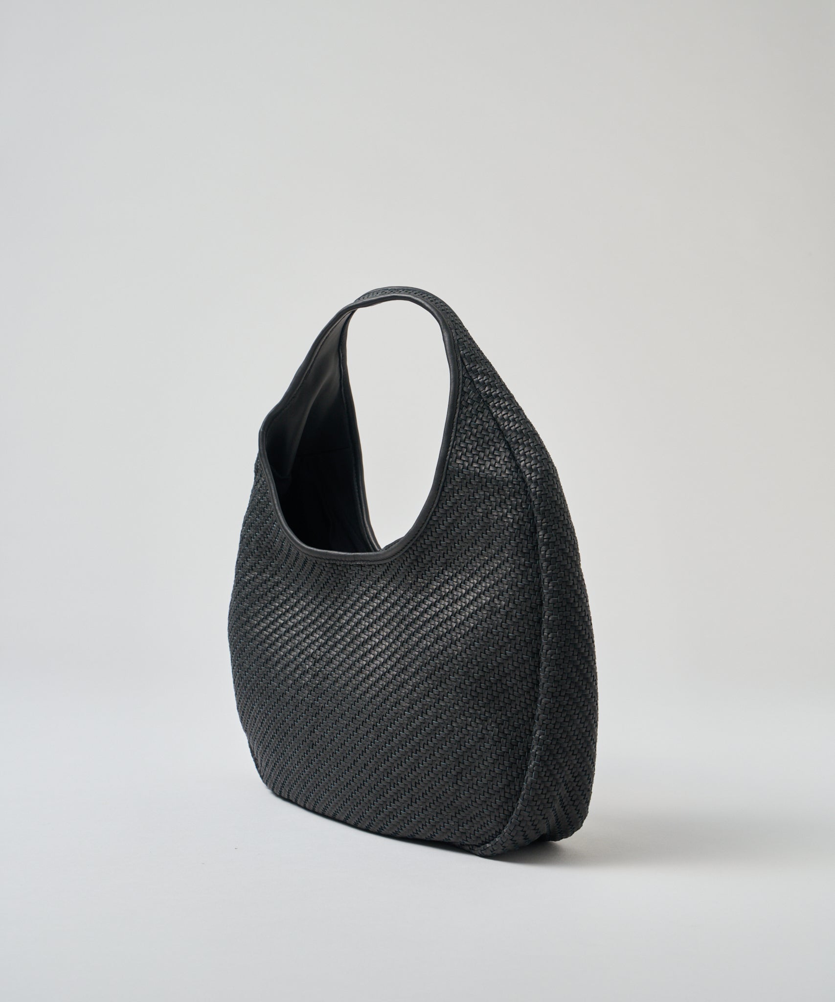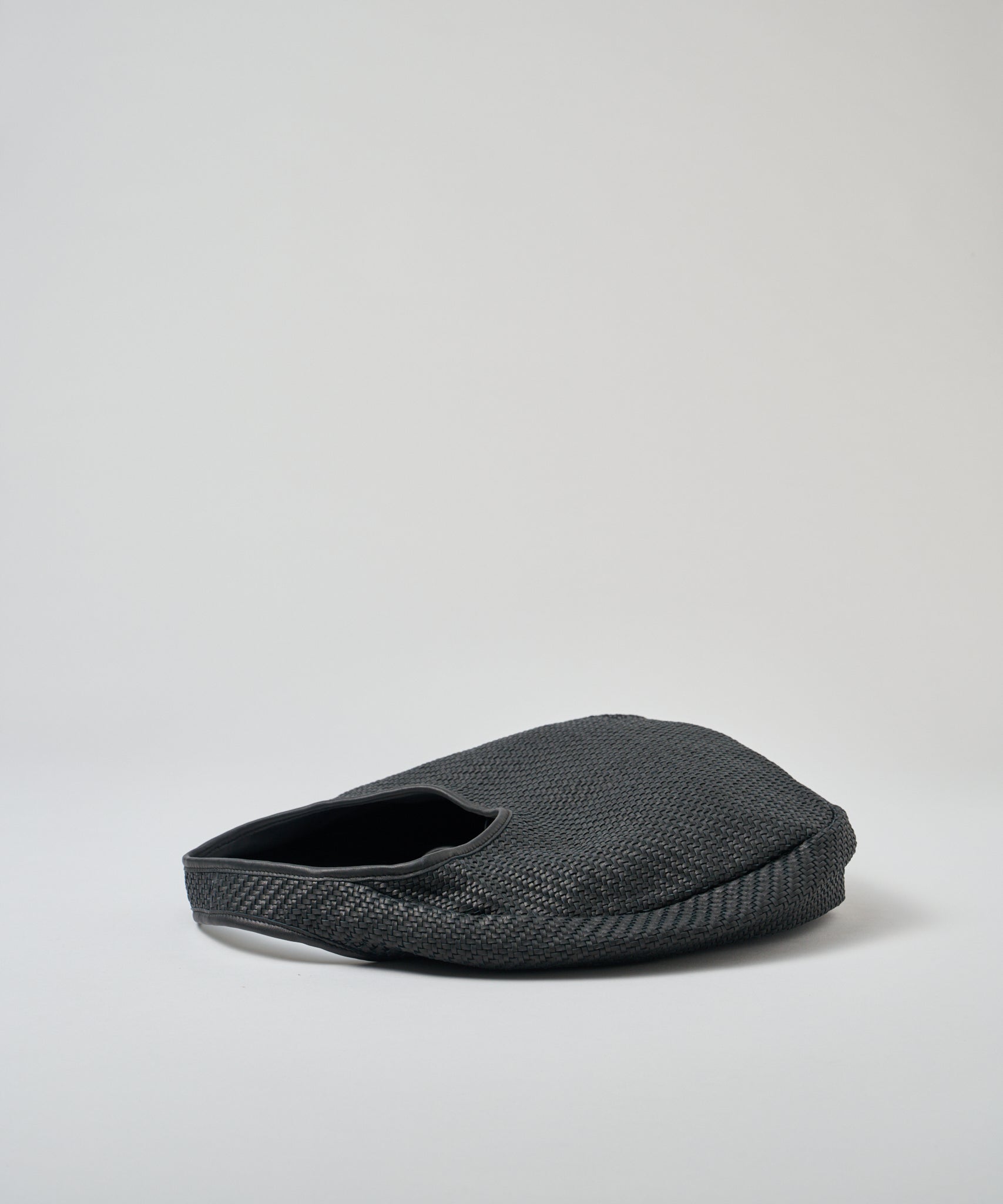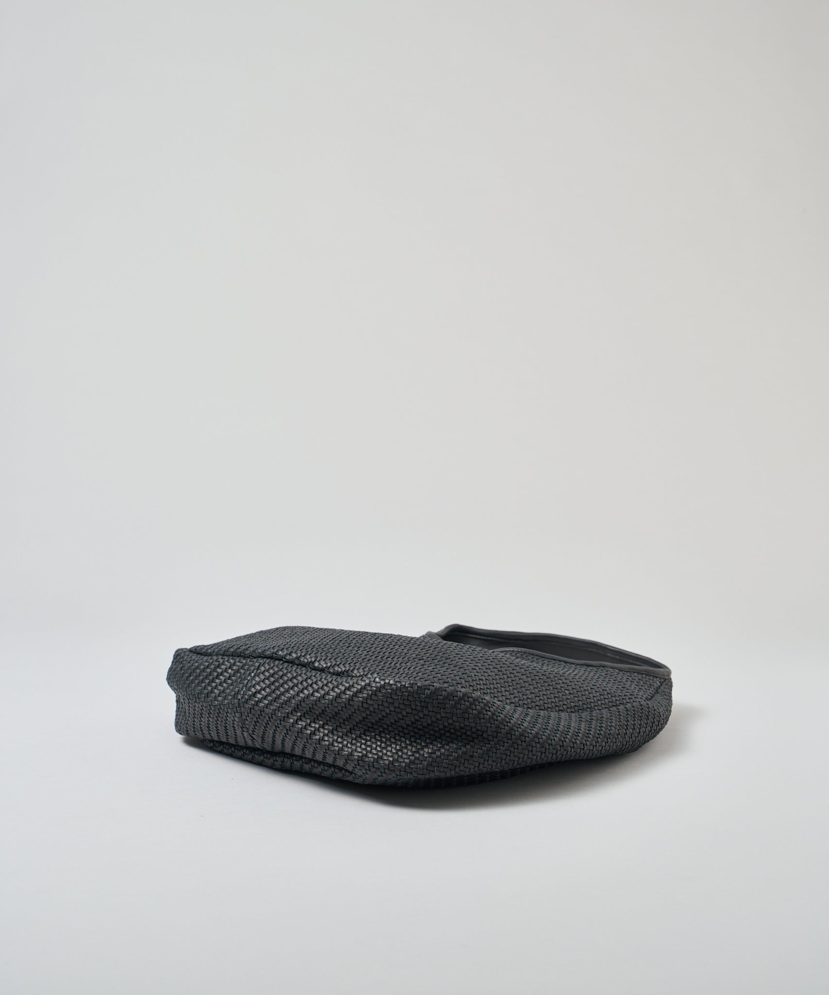 Sheepskin originally tanned for gloves is knitted into a single piece of leather mesh using the Ajiro knitting technique. This method is similar to the knit and sewn method used for clothing, where the leather is knitted into a single piece and then cut and sewn. To take advantage of the supple texture of the raw hides, more oil is added than usual. The pigment used to adjust the color is also mixed with oil and sprayed very thinly to make it blend in, in pursuit of a touch that feels as if it is absorbed by the hand. This material was completed with the cooperation of an atelier in India where craftsmen specializing in the formation of leather mesh gather.