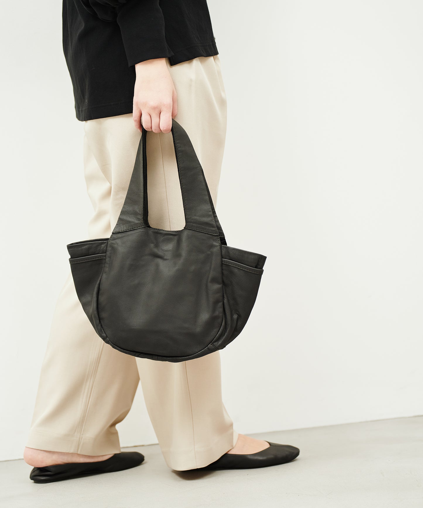 #11《SALE 20%》Pumpkin sack S (black) / goatskin "BARE"