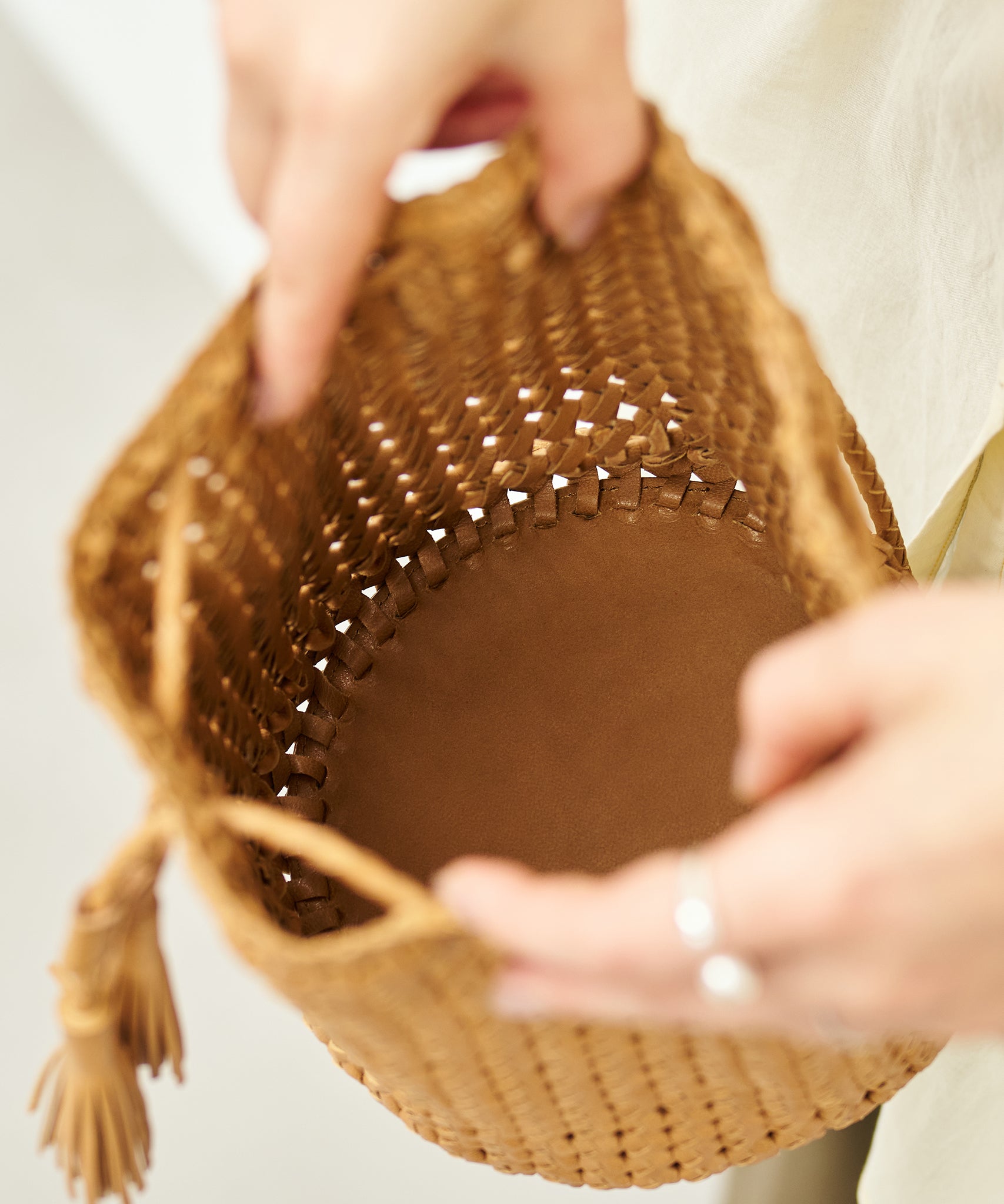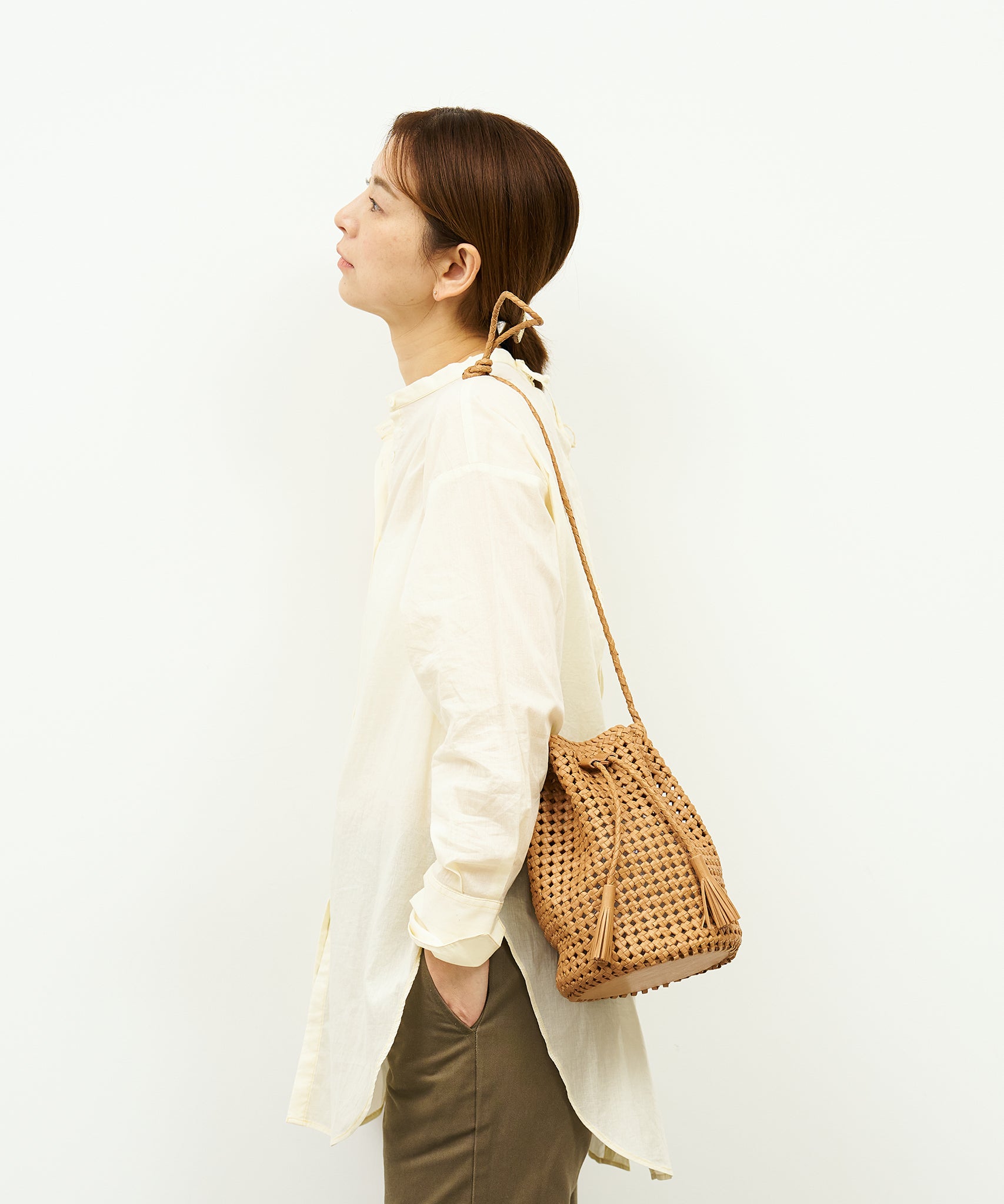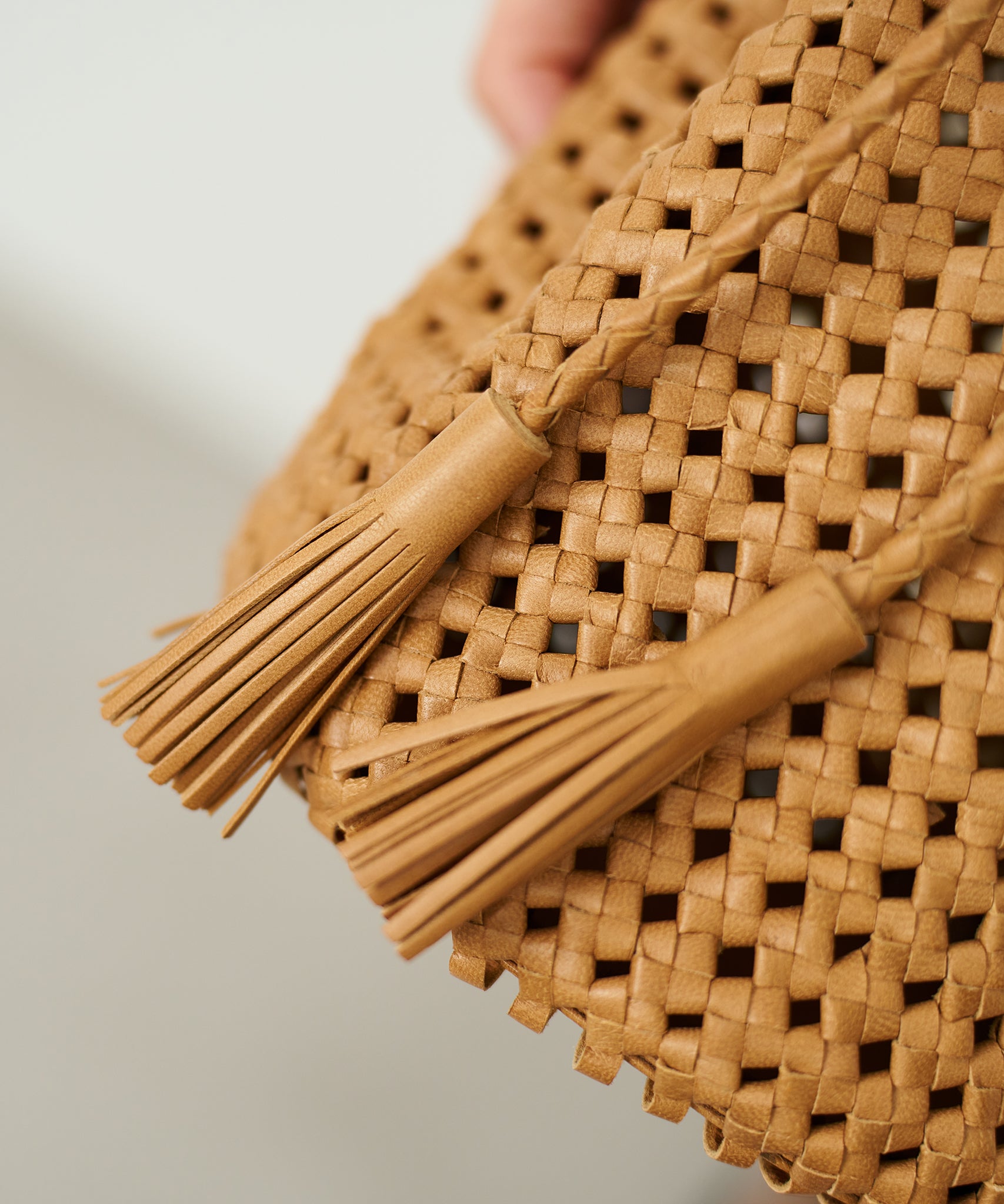 The lightweight finish of this leather mesh bag is also a REN commitment.String-like goatskin leather is braided one by one.Although the amount of leather required is very large, it is made as light as possible by thinly straining goatskin to a perfect thickness that maintains its strength.Goat mesh is made into a comfortable bag by the characteristics of goat leather with high fiber density and careful handwork.