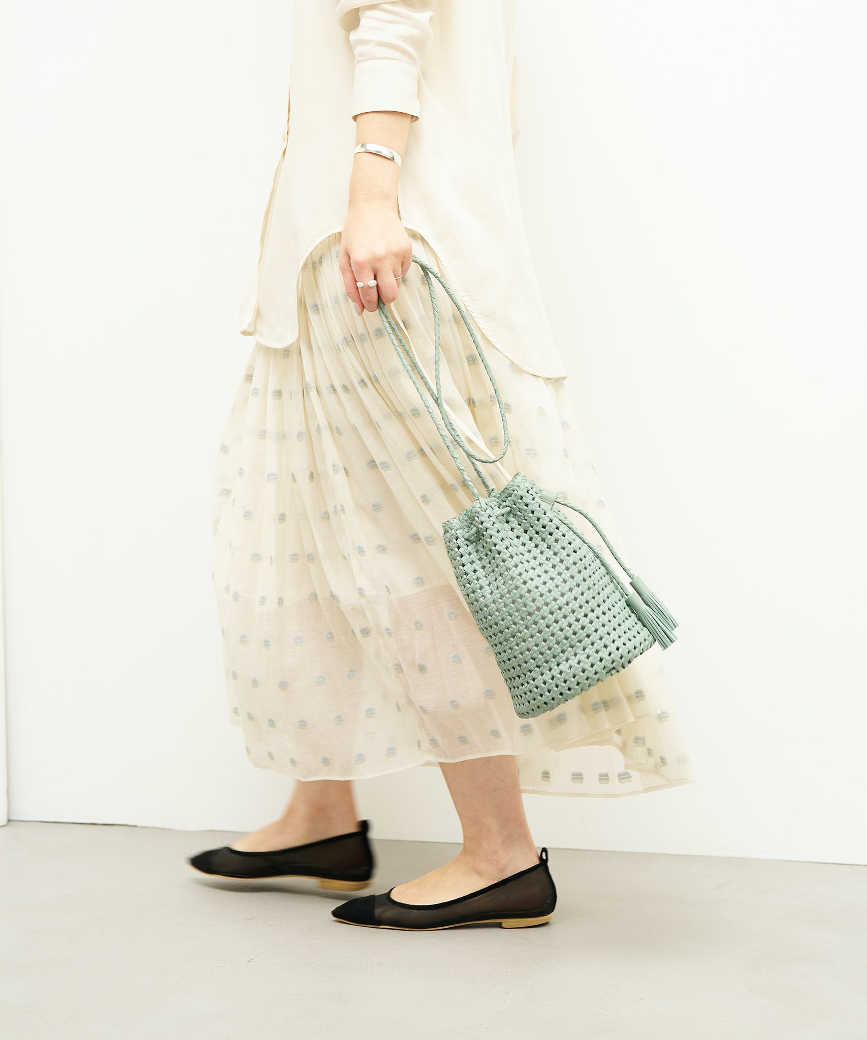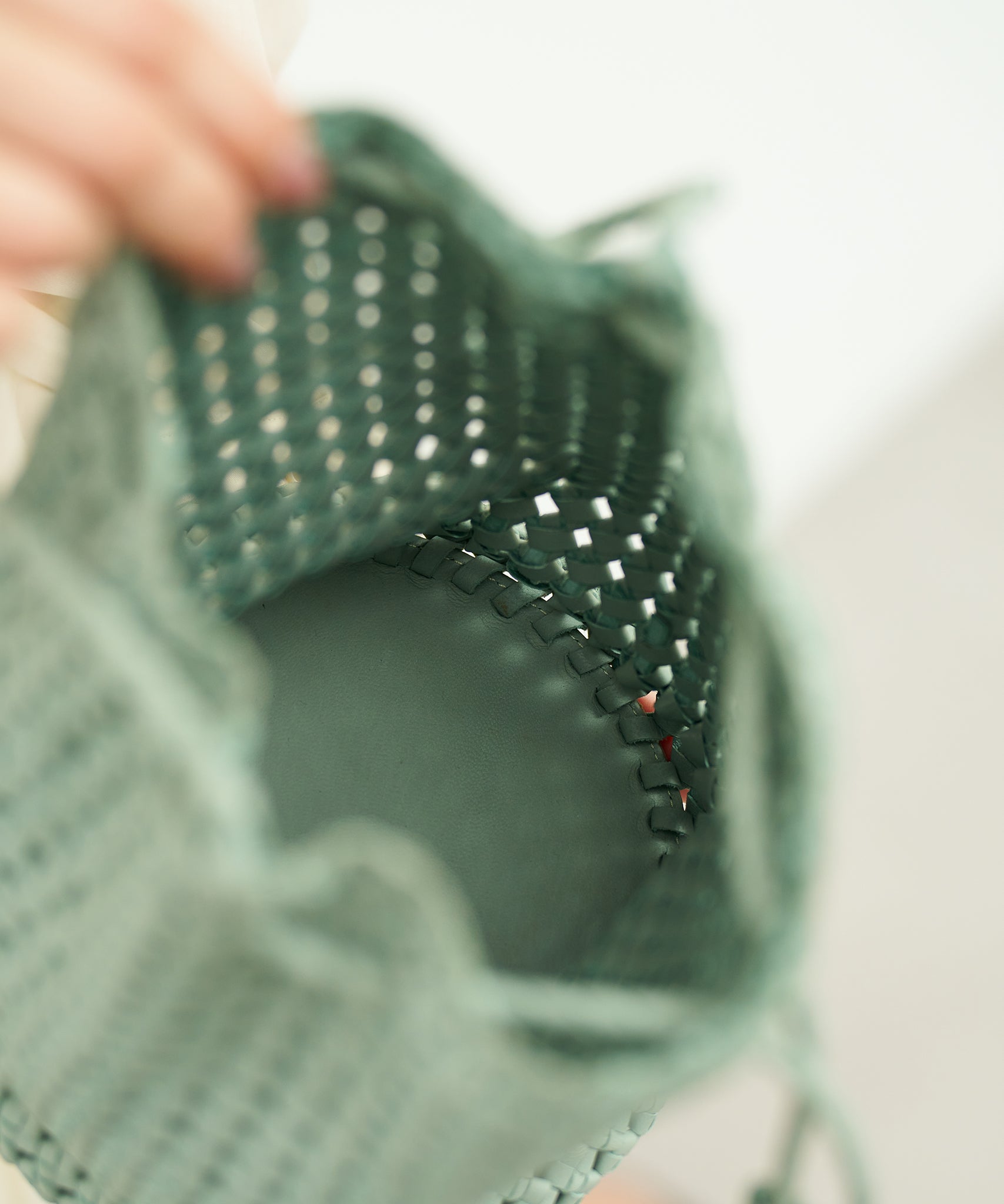 The lightweight finish of this leather mesh bag is also a REN commitment.String-like goatskin leather is braided one by one.Although the amount of leather required is very large, it is made as light as possible by thinly straining goatskin to a perfect thickness that maintains its strength.Goat mesh is made into a comfortable bag by the characteristics of goat leather with high fiber density and careful handwork.