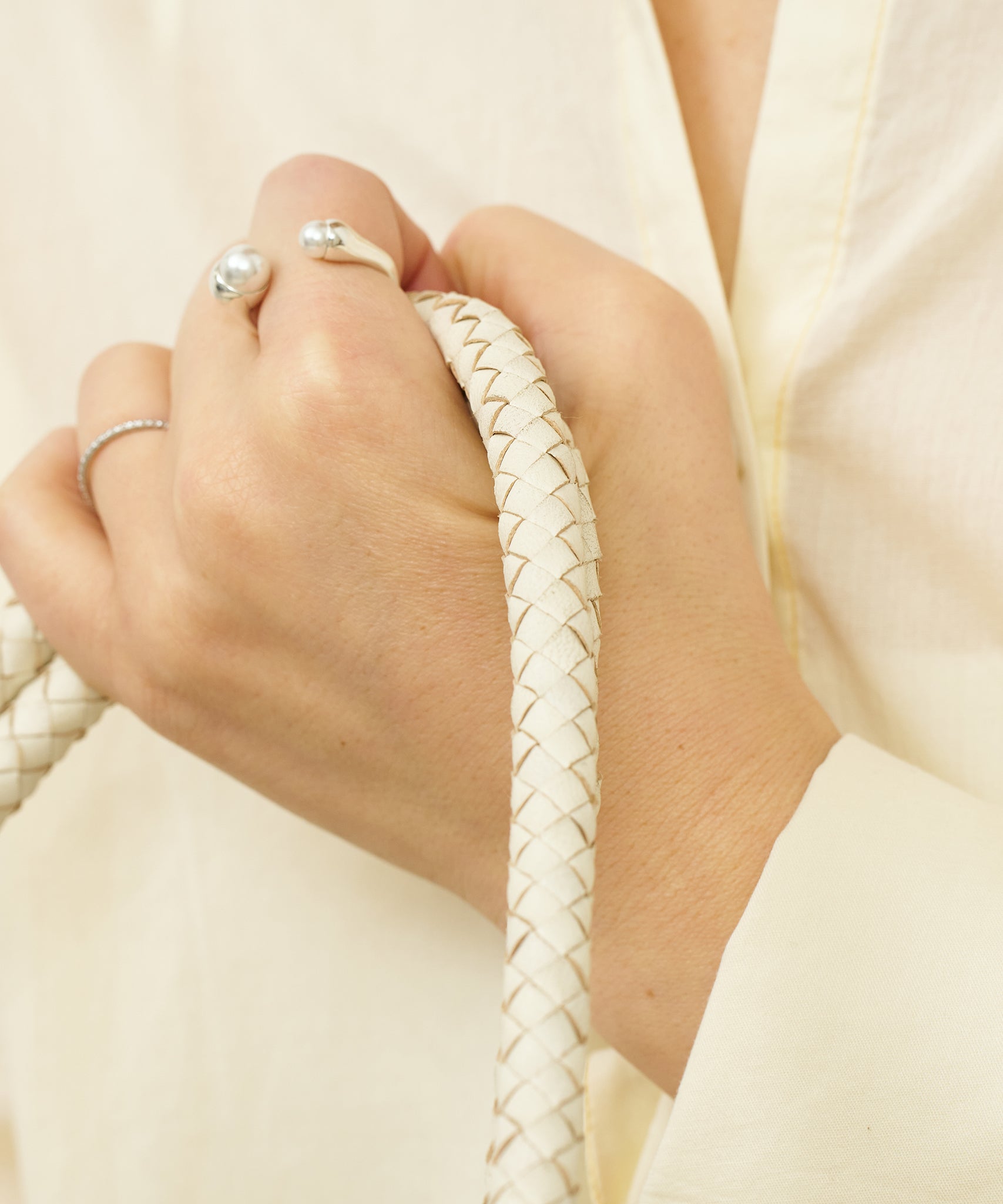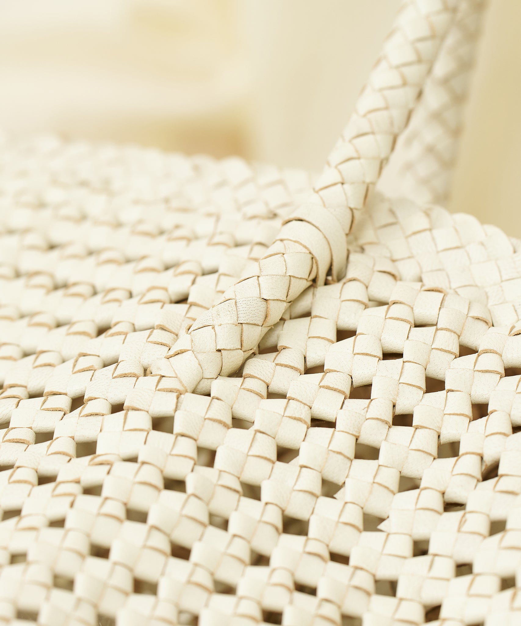 Because long strings of cut leather are carefully woven together, it takes about five times as much leather to make a product as it does to make the same area of product. The knitting is beautiful down to the smallest detail, and the ateliers in India, where skilled craftsmen gather, spare no effort.The regularly woven leather is durable, yet cool and lightweight.