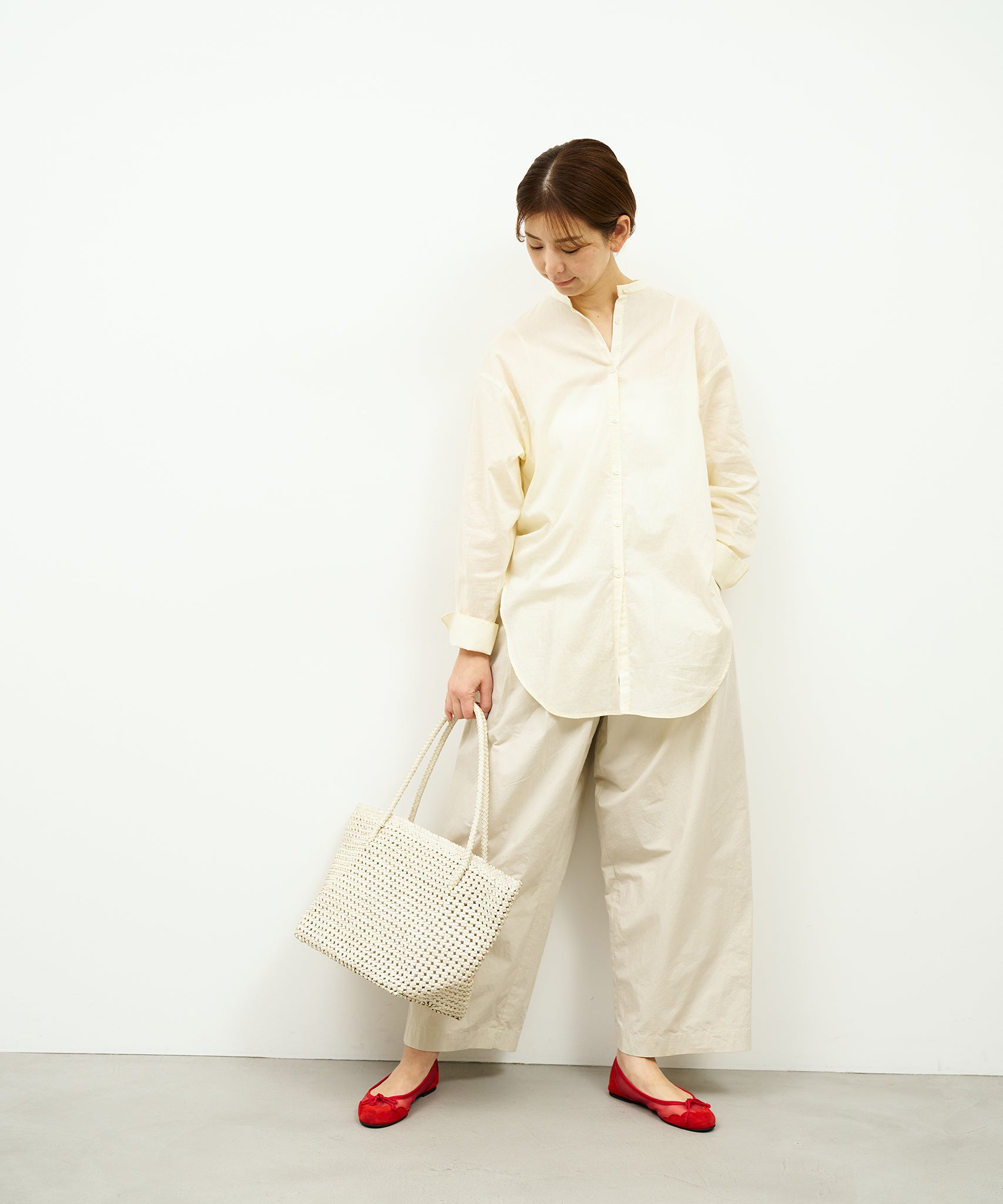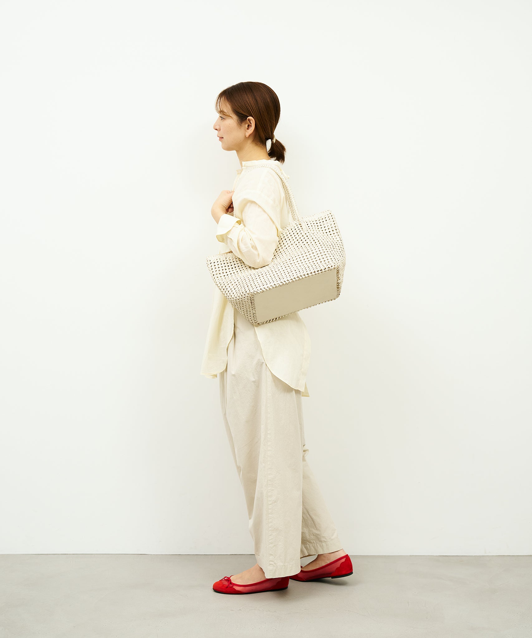The lightweight finish of this leather mesh bag is also a REN commitment.String-like goatskin leather is braided one by one.Although the amount of leather required is very large, it is made as light as possible by thinly straining goatskin to a perfect thickness that maintains its strength.Goat mesh is made into a comfortable bag by the characteristics of goat leather with high fiber density and careful handwork.