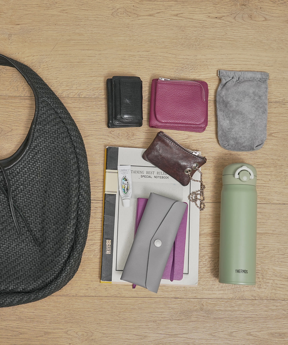 One reason this bag feels so light is the natural lightness of sheep leather—but it’s also thanks to REN’s thoughtful design philosophy. To keep the bag lightweight, we avoid using metal hardware wherever possible. Even at the opening, only leather drawstrings are used. The choice of soft lining materials and a construction that skips stiff reinforcements all contribute to the bag’s effortless lightness.