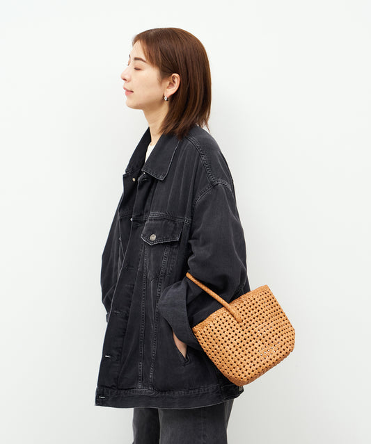 #30/ Lunch bag S_carry light (black) / pigskin "HALLIE"