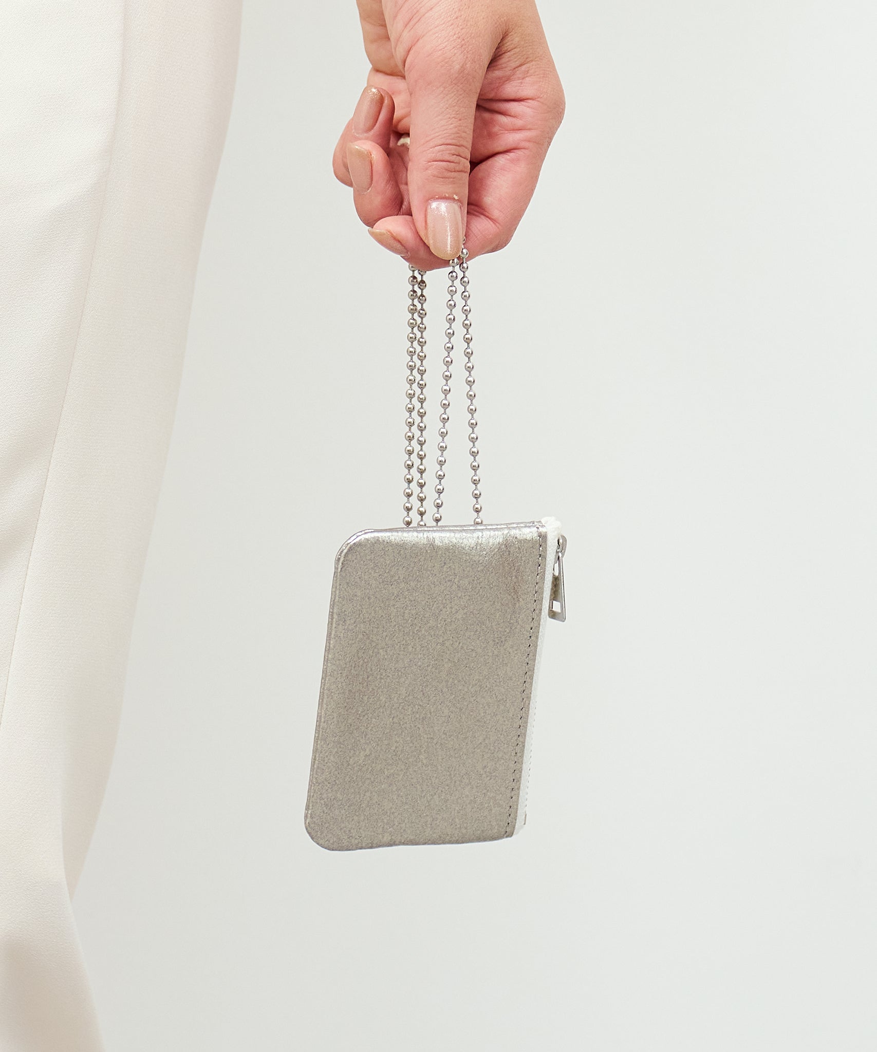 将钥匙挂在包内的链条上,即可安全收纳。通勤卡或家门钥匙等重要物品可集中收纳。这款包用途广泛,既可用作钥匙包,又可用作卡片包。