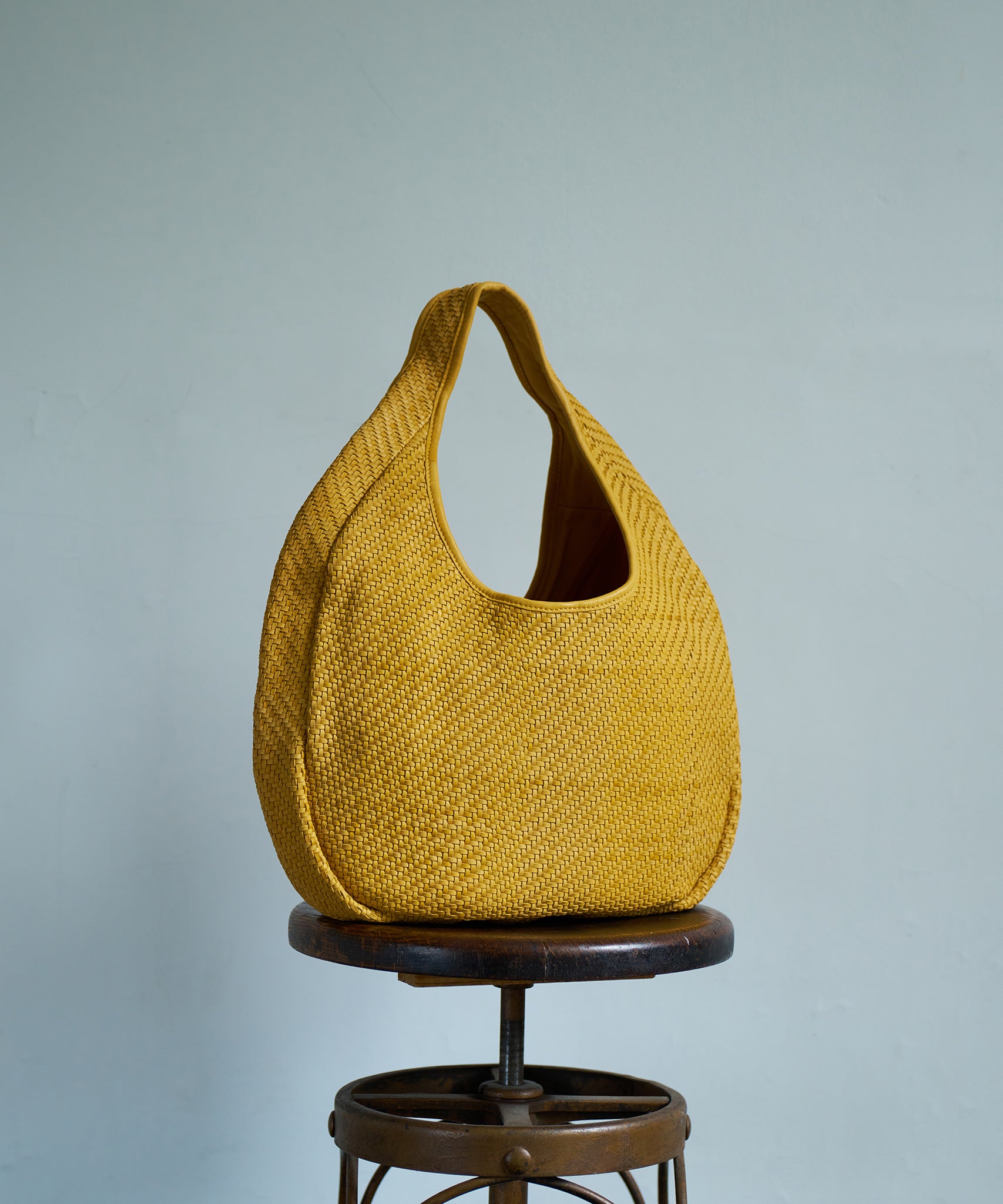原本用來製作手套的羊皮,採用網代編織技術,編織成一整塊皮革網眼。這種編織方法類似於服裝的編織和縫紉工藝,即將皮革編織成一整塊,然後進行裁剪和縫紉。為了充分利用生皮柔軟的質感,添加了比普通更多的油。用於調整顏色的顏料也與油混合,並噴灑得非常薄,使其與皮革網眼融為一體,追求彷彿被手吸收的觸感。這件作品是在印度一家專門從事皮革網眼成型的工匠聚集的工作室的協助下完成的。