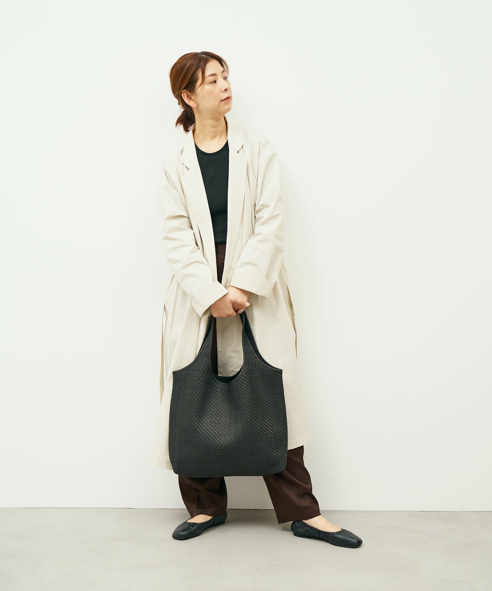足夠寬敞,可以攜帶您的日常必需品 - A4 文件、筆記型電腦、折疊傘、水瓶、小袋,甚至換洗衣物 - 而不會感覺笨重。 包款採用微妙的棱角造型,保持了簡潔的輪廓。羊毛網眼材質柔軟精緻,與結構感十足的造型相得益彰,更顯靜謐活力。