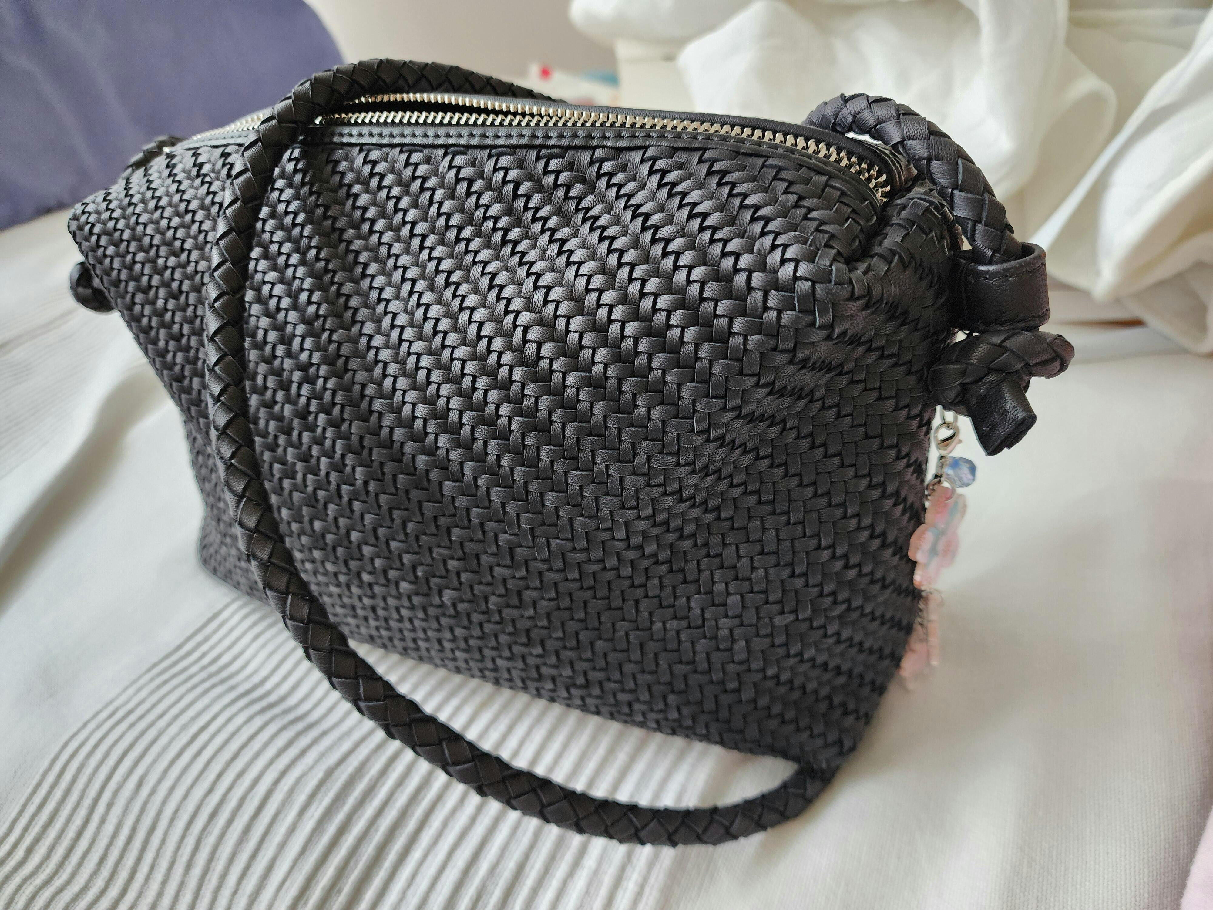 編織肩帶夠寬大,既穩固又舒適。其大膽的外觀也為你的穿搭錦上添花。你可以隨意繫緊兩端,調整長度——短款則像斜挎包一樣背起來,凸顯橫向方正的包身。