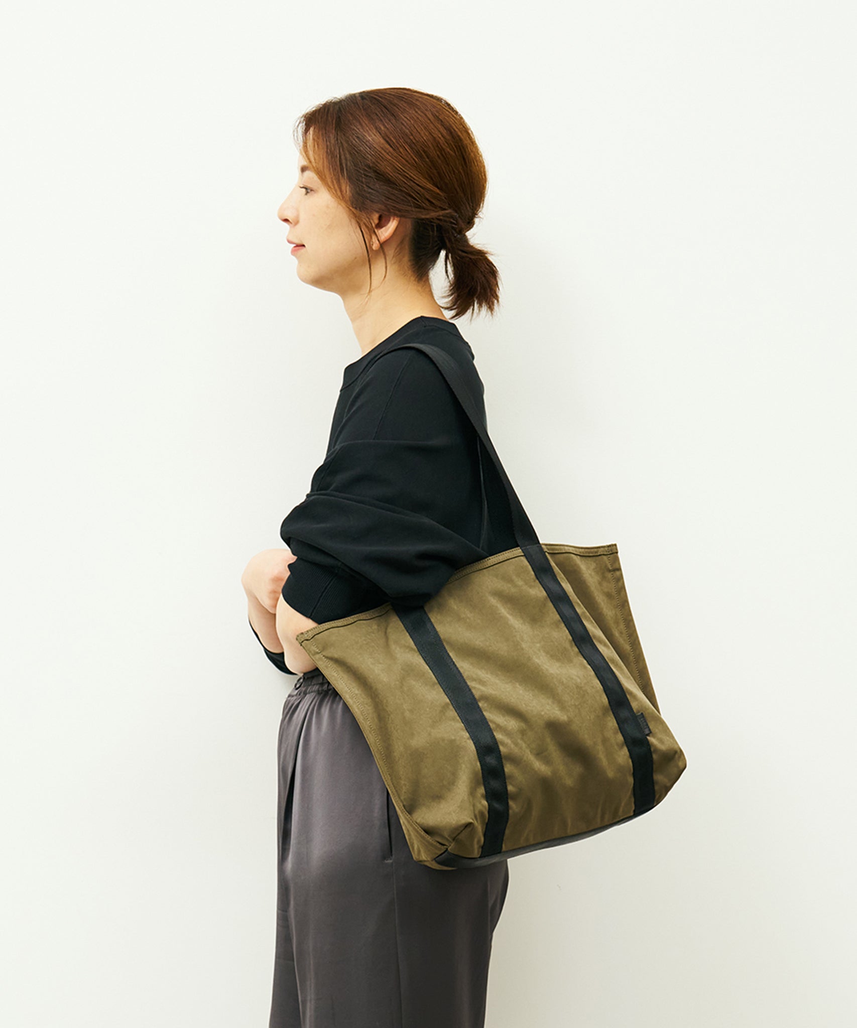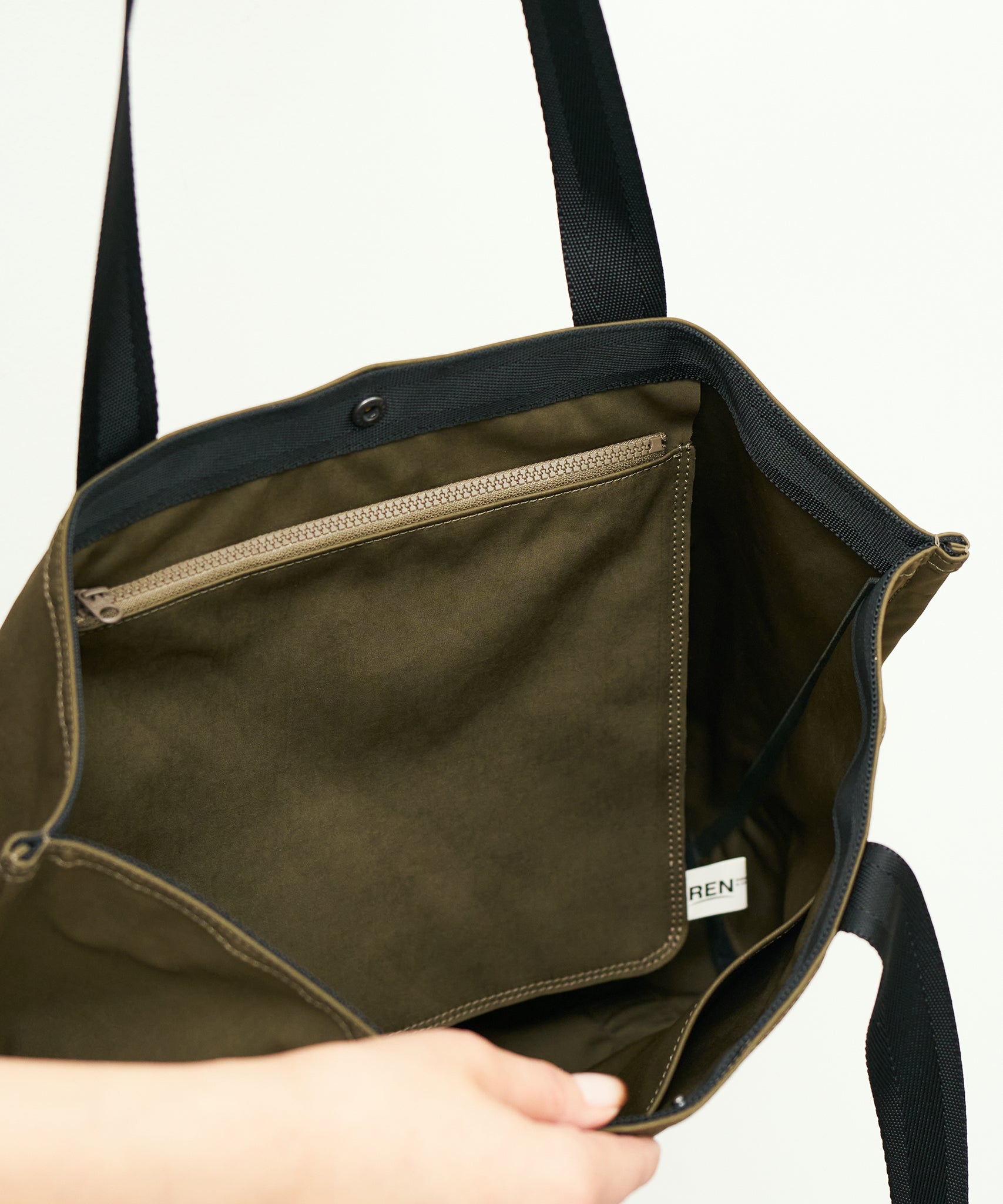 #89/ 皮帶托特包 (卡其色) / 高清尼龍