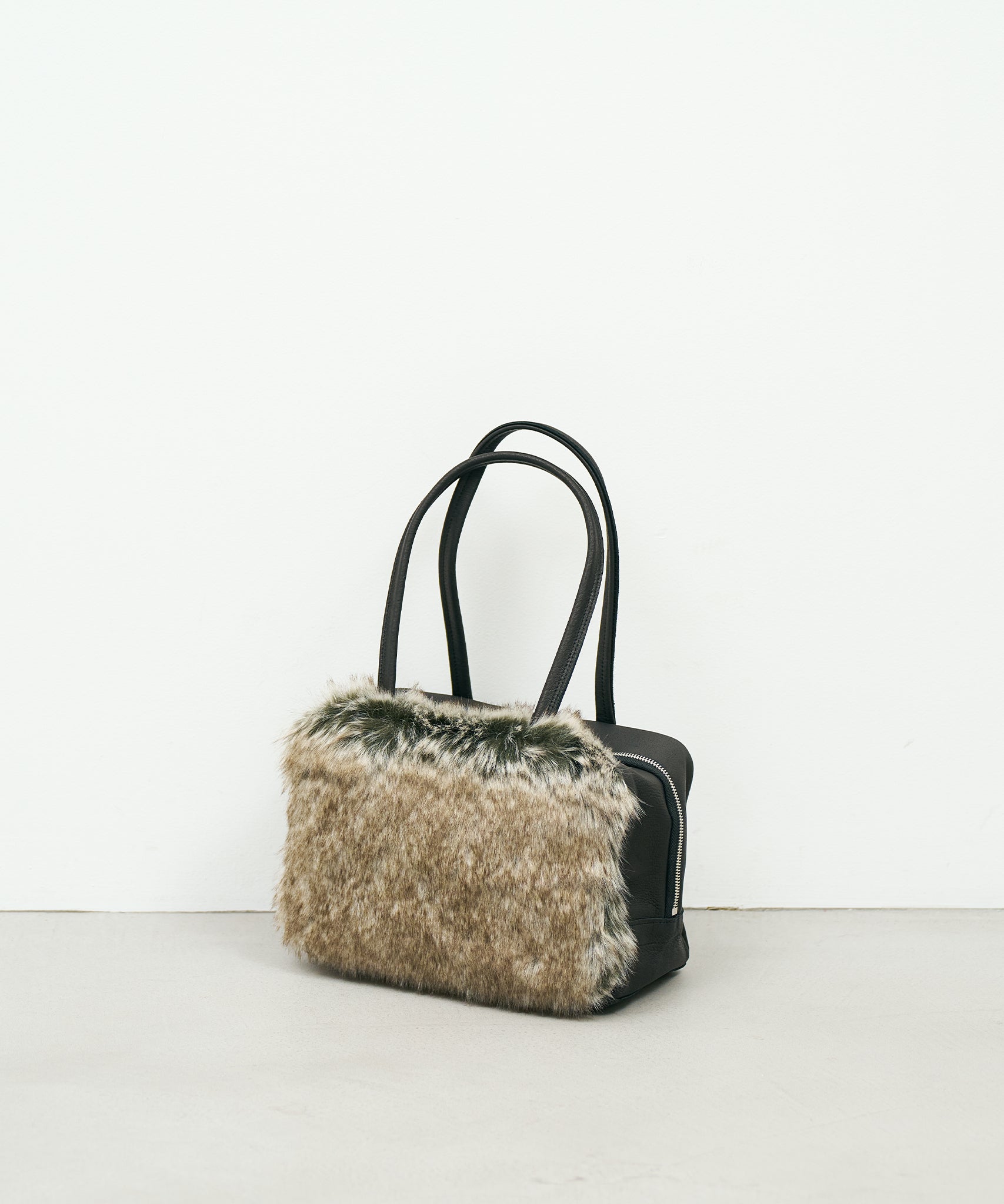 #88a / Square duffle XS / Pigskin "HALLIE × Craft fur"